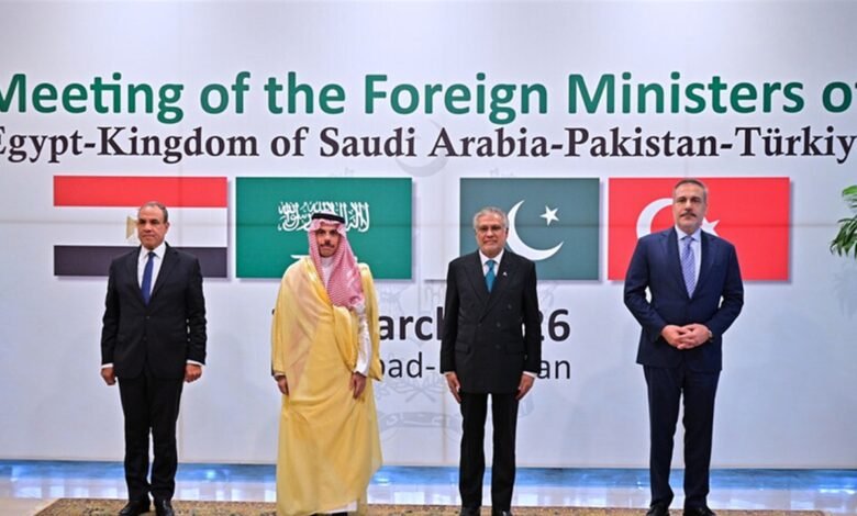أجرى وزراء خارجية باكستان وتركيا ومصر والسعودية مباحثات في العاصمة الباكستانية إسلام آباد. تناولت المباحثات سبل تسوية النزاع بين الولايات المتحدة وإيران.