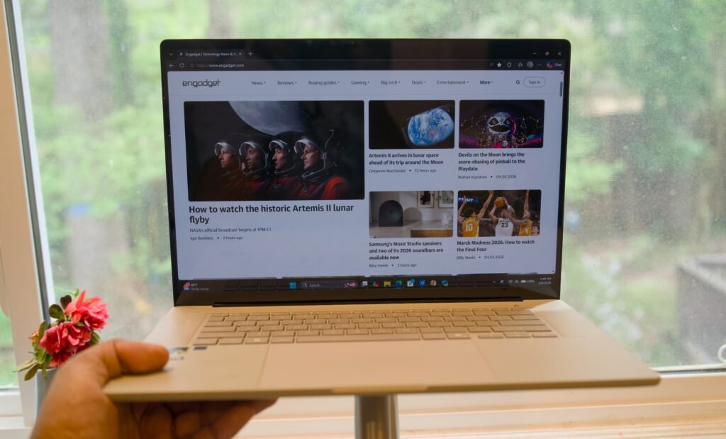 أحد الجوانب الأكثر إغراءً في A14 لا يزال الأكثر جاذبية في A16: يبدو خفيفًا بشكل مذهل مقارنةً بحجمه. النموذج الذي أختبره، والذي سيتوفر أيضًا في Best Buy، يزن 2.9 رطل بسبب غلاف الشاشة اللمسية الزجاجية. لكن يمكنك الحصول أيضًا على نسخة أرقى بوزن 2.6 رطل متاحة عبر المتجر الإلكتروني لشركة ASUS.
