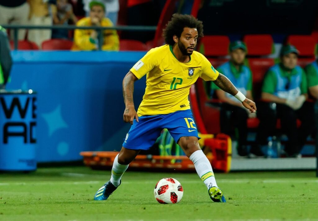 KAZAN, RUSSIA - JULY 06: Marcelo of Brazil controls the ball during the 2018 FIFA World Cup Russia Quarter Final match between Brazil and Belgium at Kazan Arena on July 6, 2018 in Kazan, Russia. (Photo by TF-Images/Getty Images)