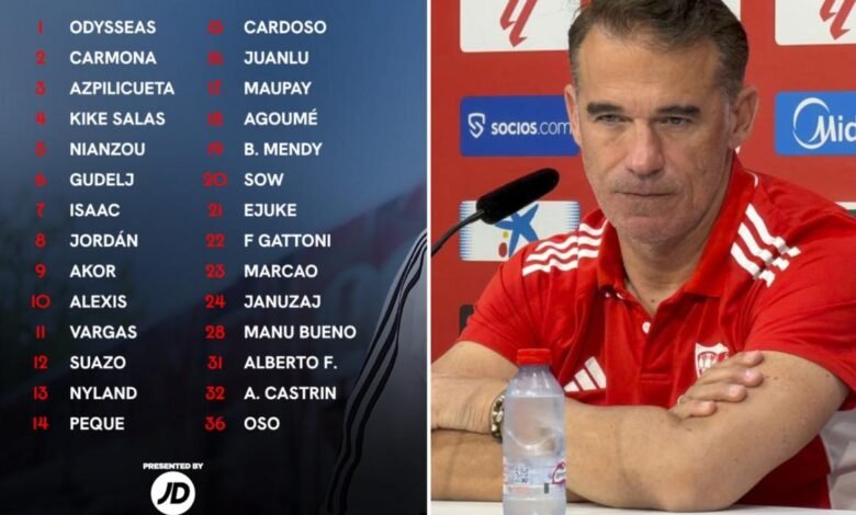أعلن نادي إشبيلية عن قائمة اللاعبين المدعوين لمواجهة أوساسونا يوم الأحد، ضمن الجولة الثانية والثلاثين من الدوري الإسباني. وقد قرر المدرب لويس غارسيا بلازا اصطحاب 28 لاعبًا، وهو العدد الكامل المتاح من الفريق. تُقام المباراة في ملعب إل سادار في الساعة 18:30.