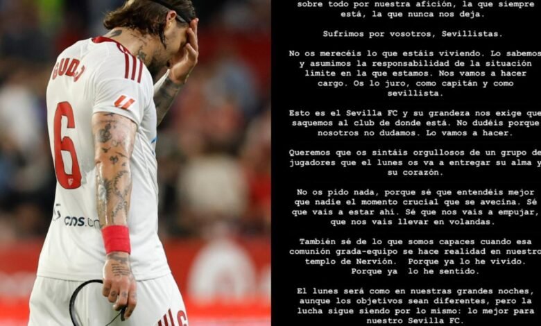بعث اللاعب الصربي نيمانيا جوديلج، كابتن فريق إشبيلية، رسالة مؤثرة إلى جماهير النادي عبر حساباته على وسائل التواصل الاجتماعي، عقب الهزيمة الموجعة أمام أوساسونا في الدوري الإسباني. وأعرب جوديلج عن شعور جماعي بالاستياء والخيبة، حيث أكد أن الكلمات تعجز عن وصف الإحباط الذي يسيطر على الفريق بعد المباراة.