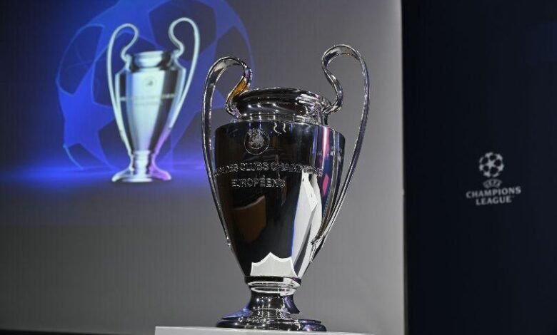 NYON, SWITZERLAND - NOVEMBER 7: A view of the UEFA Champions League trophy during the UEFA Champions League 2022/23 Round of 16 draw at the UEFA Headquarters, The House of the European Football, on November 7, 2022, in Nyon, Switzerland. (Photo by Kristian Skeie – UEFA/UEFA via Getty Images).